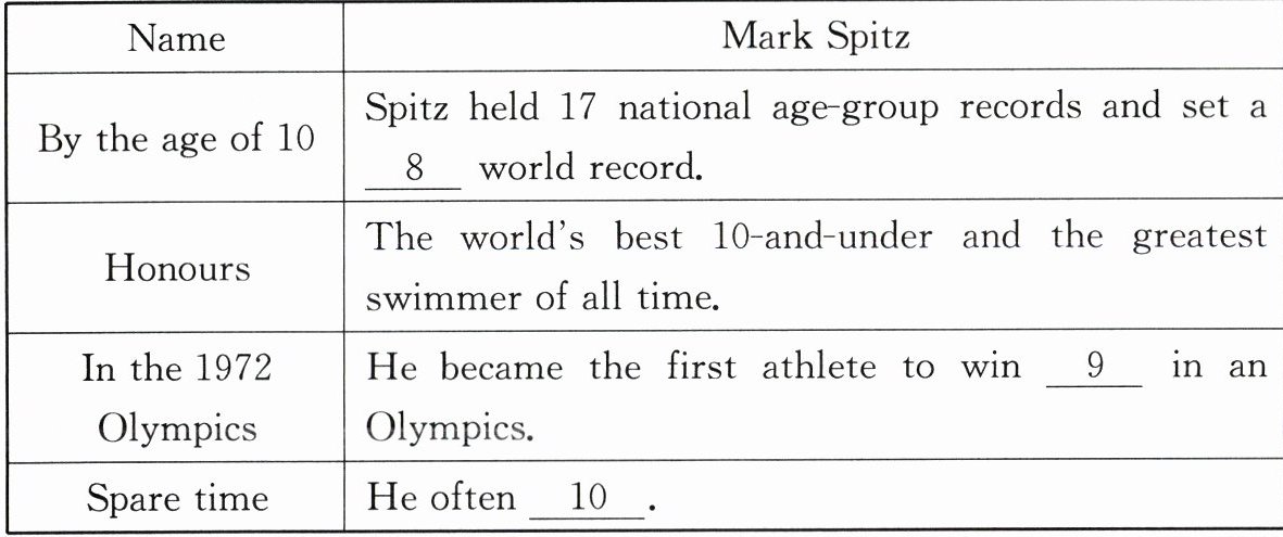 听第一篇短文,完成第8~10小题。请根据短文内容,选择正确答案,完成信息记录表。