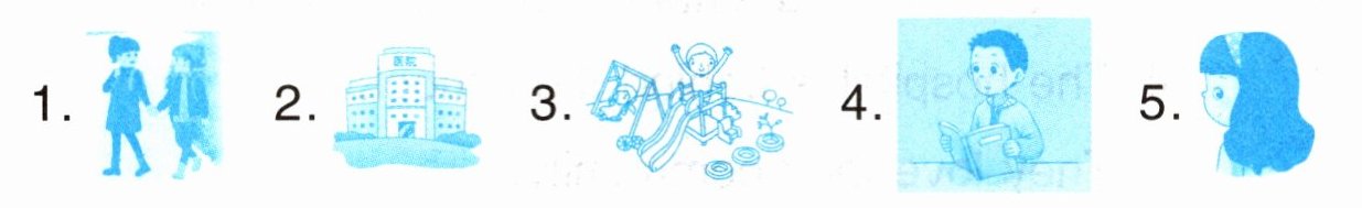)4. —We are ______ the park. Look! There is a shop.—Great! Let’s go and see.