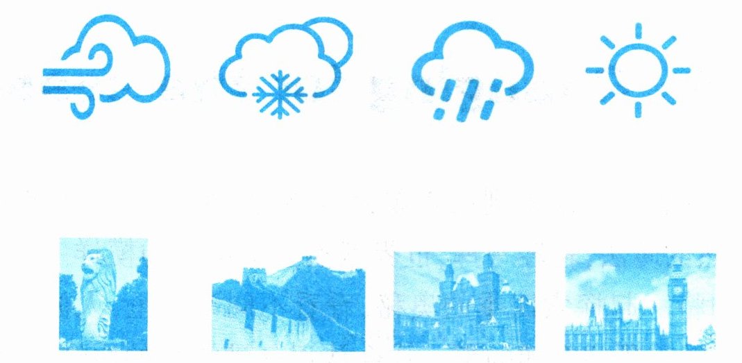 任务一:阅读短文,将天气图案与相应的城市连线。