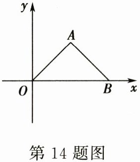14. 若将等腰直角三角形$AOB$按如图的位置放置,$OB = 2$,则点$A$关于原点对称的点的坐标为______.