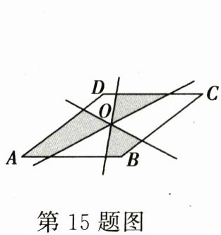 15. 如图,四边形$ABCD$是菱形,$O$是两条对角线的交点,过点$O$的三条直线将菱形分成阴影部分和空白部分.当菱形的两条对角线的长分别为6和8时,阴影部分的面积为______.