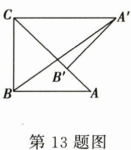 13. 如图,将$\triangle ABC绕点C逆时针旋转得到\triangle A'B'C$,其中$A'与A$是对应点,$B'与B$是对应点,点$B'落在边AC$上,连接$A'B$.若$\angle ACB = 45^{\circ}$,$AC = 3$,$BC = 2$,则$A'B$的长为______.