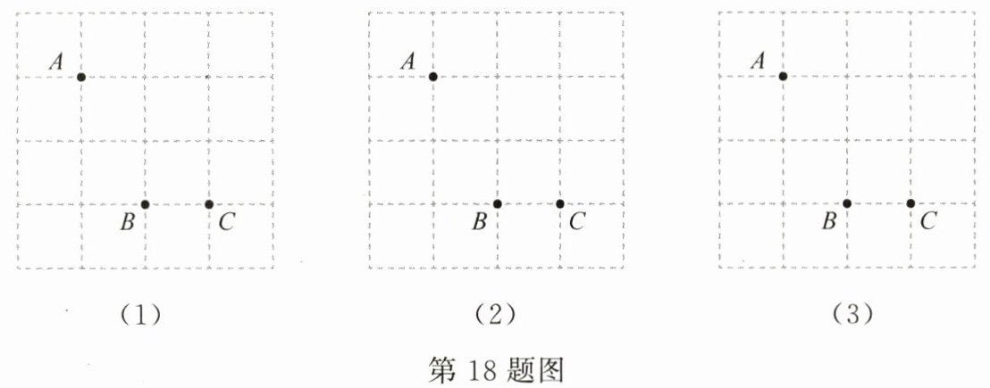 18. (6分)如图,方格纸中有三个点$A$,$B$,$C$,要求作一个四边形使这三个点在这个四边形的边(包括顶点)上,且四边形的顶点在方格的顶点上.