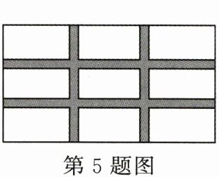 5. (3 分)(2023·黑龙江中考)如图,在长为 100 m、宽为 50 m 的矩形空地上修筑四条宽度相等的小路,若余下的部分全部种上花卉,且花圃的面积是$ 3 600 m^2,$则小路的宽是 (