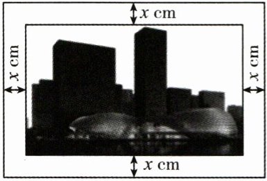 4. (3 分)如图,某摄影爱好者拍摄了一幅长为 60 cm、宽为 50 cm 的剧院风景照,现在风景画四周镶一条等宽的纸边,制成一幅矩形挂图.若要使整幅挂图的面积是$ 4 200 cm^2,$设纸边的宽为 x cm,则 x 应满足的方程是 (