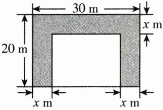 12. (3分)扬帆中学有一块长$30m$、宽$20m$的矩形空地,计划在这块空地上划出四分之一的区域(图中阴影部分)种花,小禹同学设计的方案如图所示,求花带的宽度.设花带的宽度为$x m$,则可列方程为 (
