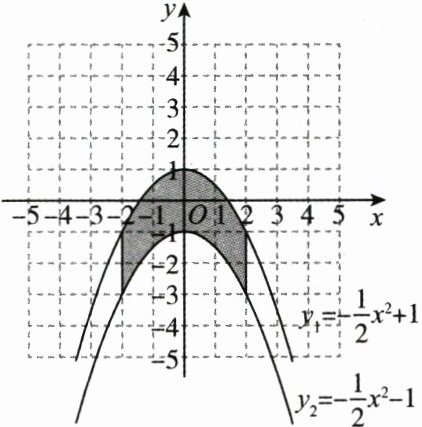 8 解析:由抛物线的解析式可知二次项系数相同,故抛物线y₁=-$\frac{1}{2}$x²+1向下平移2个单位长度得到抛物线y₂=-$\frac{1}{2}$x²-1,阴影部分的面积恰好拼接为如图所示的矩形面积.