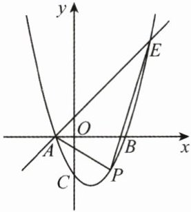 $\therefore$当$t = 2$时,$\triangle AEP$的面积最大为32,此时点$P$的坐标为$(2,-4)$.