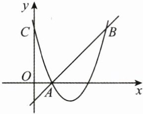 13. (16分)(2025·德州德城区期中)如图,二次函数 $ y = x ^ { 2 } + b x + c ( a \neq 0 ) $ 的图象经过点 $ A ( 1, 0 ) $ 且与 $ y $ 轴交于点 $ C $,点 $ B $ 和点 $ C $ 关于该二次函数图象的对称轴直线 $ x = 2 $ 对称,一次函数 $ y = k x + m $ 的图象经过点 $ A $ 及点 $ B $.