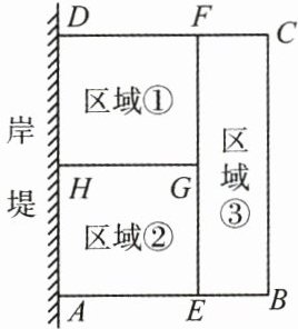 12. (9 分)为了节省材料,某水产养殖户利用水库的岸堤(岸堤足够长)为一边,用总长为 160 m 的围网在水库中围成了如图所示的①②③三块矩形区域,而且这三块矩形区域的面积相等.设 $ BC $ 的长度为 $ x m $,矩形区域 $ ABCD $ 的面积为 $ y m^2 $。