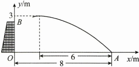 ∴抛物线的顶点坐标为(2,3).设抛物线为$y=a(x-2)^{2}+3$.把A(8,0)代入,得$36a+3=0$,解得$a=-\frac{1}{12}$.
