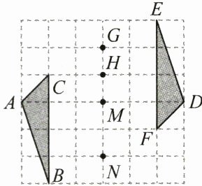 3. (3分)(2025·邯郸冀南新区期末)如图,在正方形网格中,A,B,C,D,E,F,G,H,M,N是网格线交点,$ \triangle ABC 与 \triangle DEF $关于某点对称,则其对称中心是点
