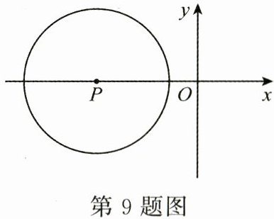 9. (4分)如图,在平面直角坐标系中,半径为4的⊙P的圆心P的坐标为(-6,0),将⊙P沿x轴的正方向平移,使得⊙P与y轴相切,则平移的距离为( )