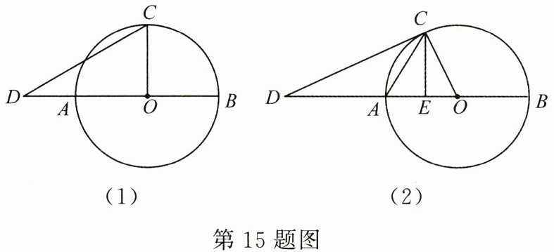 15. (12分)已知AB为⊙O的直径,C为⊙O上一点,D为BA延长线上的一点,连接CD.
