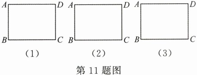 11. (14分)如图,在矩形ABCD中,AB= 6,BC= 8,在所给的3个矩形中分别画1个菱形,要求菱形的顶点都在矩形的边上,且使整个图形分别符合下列条件: