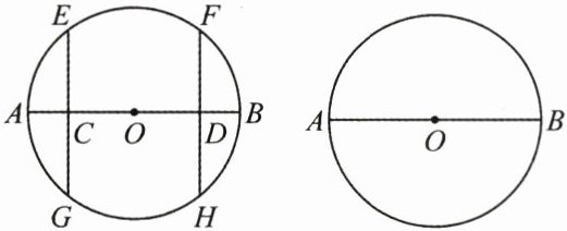 13. (14 分)如图,在$\odot O$中,$C$,$D是直径AB$上的两点,且$AC = BD$,$EG\perp AB于点C$,$FH\perp AB于点D$,点$E$,$G$,$F$,$H在\odot O$上.
