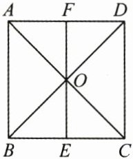 4. (6 分)如图,正方形$ABCD$的边长为 2,$AC和BD相交于点O$,过点$O作EF// AB$,交$BC于点E$,交$AD于点F$,则以点$B$为圆心、$\sqrt{2}长为半径的圆与直线AC$,$EF$的位置关系分别是什么?