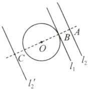 解:有两种情况:如图,当$l_{2}$与$l_{1}$在圆的同一侧时,