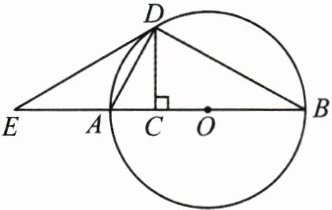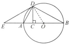 13. (8 分)如图,$AB为\odot O$的直径,取$OA的中点C$,过点$C作CD\perp AB交\odot O于点D$,点$D在AB$的上方,连接$AD$,$BD$,点$E在线段CA$的延长线上,且$\angle ADE = \angle ABD$.求: