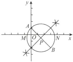 (2)如图,在坐标系中找到 A(0,1),B(3, - 2),连接 AB,分别以点 A,B 为圆心,以大于$\frac{1}{2}AB$的长为半径画弧,连接两弧的交点与 AB 交于点 P,以点 P 为圆心,以 AB 为直径画圆,圆与 x 轴的交点即为点 M,N。