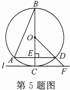 5. (3分)如图,$BC为\odot O$的直径,弦$AD \perp BC于点E$,直线$l切\odot O于点C$,延长$OD交l于点F$,若$AE = 2$,$\angle ABC = 22.5^{\circ}$,则$CF$的长度为 (