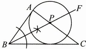 如图,(1)作$\angle ABC的平分线BF$,与$AC相交于点P$;