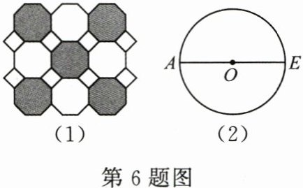 6. (6 分)图(1)是我们常见的地砖上的图案, 其中包含了一种特殊的平面图形——正八边形. 如图(2), $ AE $ 是 $ \odot O $ 的直径, 请你用直尺和圆规作 $ \odot O $ 的内接正八边形 $ ABCDEFGH $. (不写作法, 保留作图痕迹)
