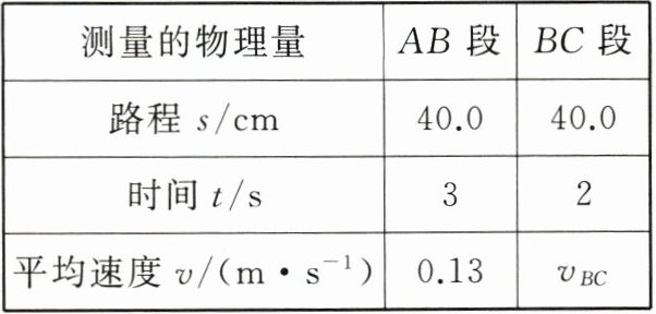 (3)小明正确采纳同学们的合理建议后进行实验,得到的实验数据见表所示,可算出BC段的平均速度为