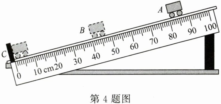 4. (18分)(2024·青岛期中)放学回家路上,小明发现骑自行车下坡时会越来越快。为了研究物体从斜面上滑下时速度大小的变化规律,他用小车、带刻度的斜面、挡板等器材进行了实验。