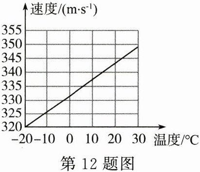 12. (4分)声音在干燥空气中的传播速度随温度的变化而变化,如图是声速大小跟空气温度的关系图像。从图中可以获得的信息有(