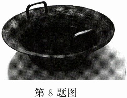 8. (4分)如图所示是某博物馆珍藏的古代青铜"鱼洗",注入半盆水后,用双手搓把手,会发出嗡嗡声,盆内水花四溅。传说,众多"鱼洗"声能汇集成千军万马之势,曾吓退数十里外的敌军,这反映了我国古代高超的科学制器技术。下列说法正确的是(