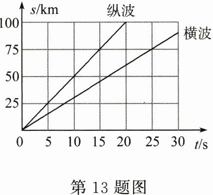 13. (9 分)利用地震波中纵波和横波的传播速度不同可以监测震源的位置。地震发生时,伴随有