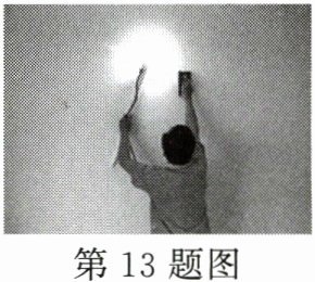 13. (4分)小明同学的新家正在装修,周末他和爸爸一起来到施工现场。如图所示,工人师傅正在处理墙面,小明看到后十分不解,大白天工人师傅怎么还拿着灯泡来照明呢?小明仔细观察后发现,看起来已经很平整的墙面,用灯光侧对着墙一照,墙面上仍出现了一些有阴影的地方,你认为这些阴影地方是