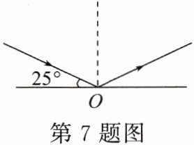 7. (6分)如图所示,入射光线与平面镜镜面的夹角为$25^{\circ}$,要想使反射光线与入射光线之间的夹角变为$120^{\circ}$,则平面镜应绕过$O$轴沿