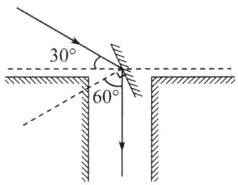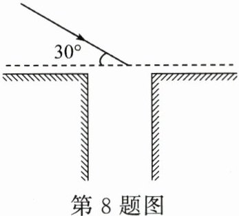 8. (6分)如图所示,小明想要利用一块平面镜将与水平面夹角为$30^{\circ}$的太阳光竖直射入井中。请完成图中光路图,画出平面镜位置并标出反射角的大小。