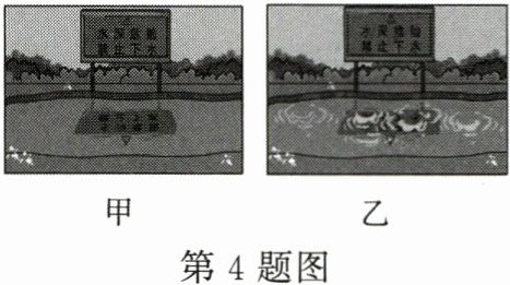 4. (6 分)如图所示是池塘上方的警示牌和它在水中倒影的两幅照片。