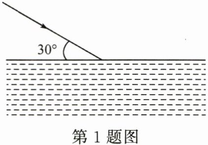 1. (9 分)一束光从空气斜射到某液面上发生反射和折射, 入射光线与液面的夹角为 $ 30^{\circ} $(如图), 则入射角的大小为 $□$
