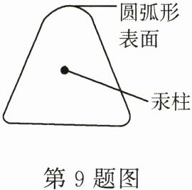 9. (6分)常用体温计的刻度部分为三棱体,横截面如图所示,其正面呈圆弧形,这样就可看清体温计内极细的汞柱,以便于读数,这是因为圆弧形玻璃的作用相当于