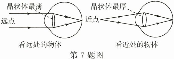 7. (4分)如图所示是正常眼睛的调节,下列判断错误的是(