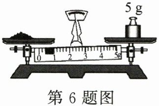 6. ($3$ 分)小明要称取 $5.4\ g$ 硫酸铜固体,当天平指针指向分度标尺中央刻度线左侧时(如图),应调节 (