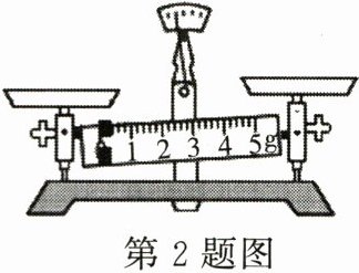 2. ($4$ 分)如图所示,学校物理实验室的托盘天平横梁两端各有一个平衡螺母。测量前,为使托盘天平横梁水平平衡,左边的平衡螺母应向