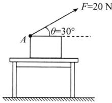 8. (4分)如图所示,在水平桌面上放有一木块,其A点受到一个大小为20N、方向跟水平面成$\theta = 30^{\circ}$的斜向上的推力,画出这个推力的示意图。