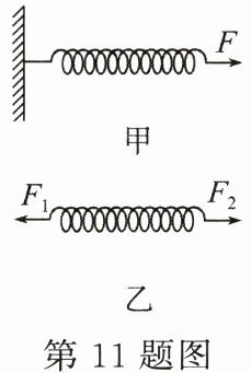 11. (3分)如图甲所示,弹簧的一端挂在墙上,一个人用4N的力F拉另一端,弹簧伸长了5cm;如图乙所示,两个人分别拉该弹簧的两端,弹簧也伸长了5cm,则每个人的力分别为 (