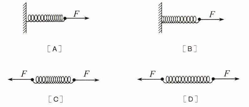 A 解析:当弹簧受力平衡静止时,墙对弹簧的拉力大小等于人对弹簧的拉力大小,为4 N;弹簧两次伸长量相同,所受拉力不变,仍为4 N,且弹簧两端所受人的拉力大小相等,即均为4 N。故选A。