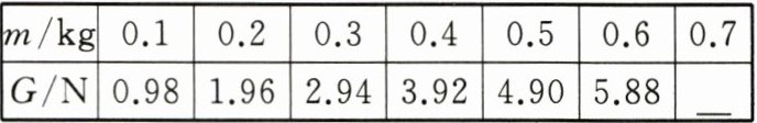 。(2) 分析表中数据可知:物体的质量为 $ 0.7 kg $ 时,它受到的重力是