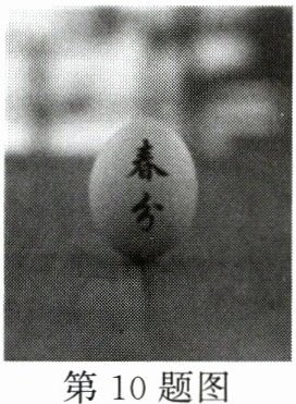 10. (3 分)(2025·孝感期中)春分到,蛋儿俏,“春分立蛋”是中国民间的传统习俗。“春分立蛋”用生鸡蛋更容易成功,因为生鸡蛋的蛋清、蛋黄之间略带松弛,蛋黄稍有些下沉,使鸡蛋重心降低,下列关于“立蛋”中包含的物理知识说法正确的是(