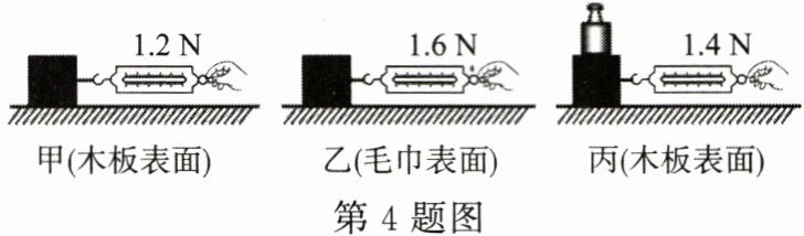 4. (14 分)在“探究影响滑动摩擦力大小的因素”的实验中,小英做了如图甲、乙、丙三次实验。
