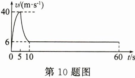 9 解析:运动员在10~60s通过的路程为$s_{后}=v_{后}t_{后}=6m/s×50s=300m$,前10s下落240m,总路程为$s_{总}=s_{前}+s_{后}=240m+300m=540m$,故运动员在整个下落过程中的平均速度为$v=\frac{s_{总}}{t_{总}}=\frac{540m}{10s+50s}=9m/s$。