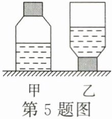5. (3分)(2025·聊城模拟)一个未装满饮料的密闭瓶子,正立放在桌面上如图甲所示,饮料对瓶底的压力为$F_{甲}$,瓶子对桌面的压强为$p_{甲}$;倒立放在桌面上如图乙所示,饮料对瓶盖的压力为$F_{乙}$,瓶子对桌面的压强为$p_{乙}$。下列关系式正确的是(