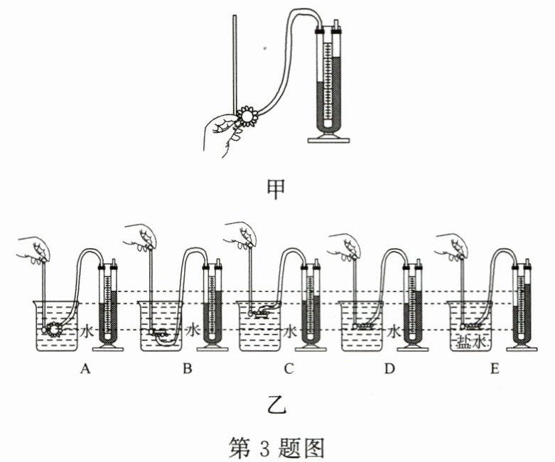2. (4分)(2025·济南期末)如图所示是某同学做"探究液体内部压强规律"的实验过程。这几步操作的主要目的是(